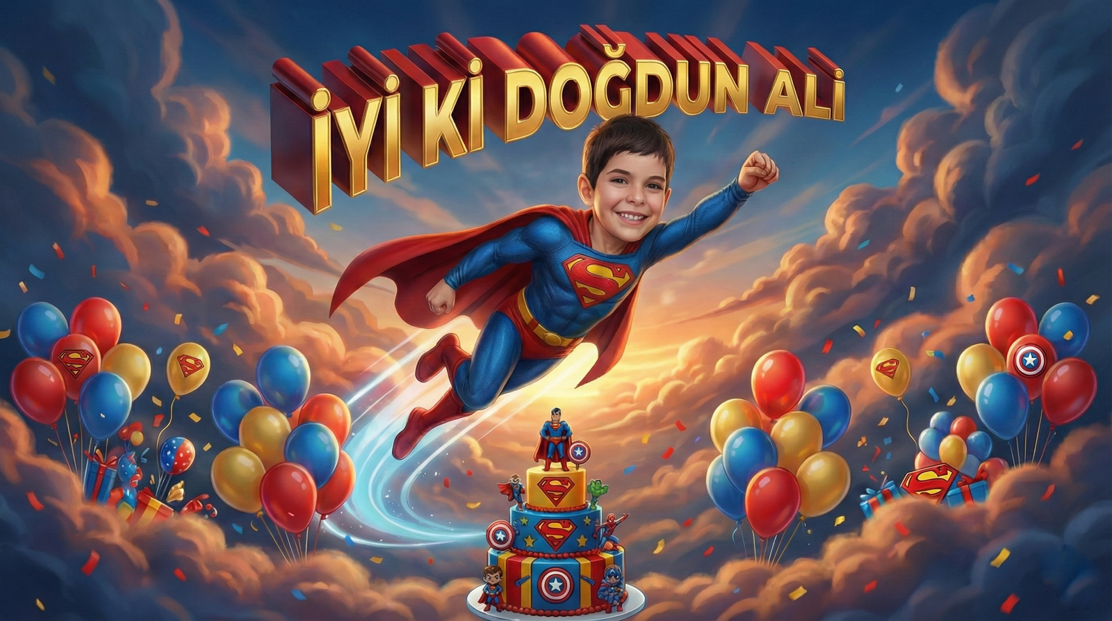 For Ali’s birthday celebration, we chose a bold and fun Superman concept to create a visually striking design. By combining vibrant colors, iconic symbols, and dynamic elements, we developed a unique visual language that brings energy to the celebration.