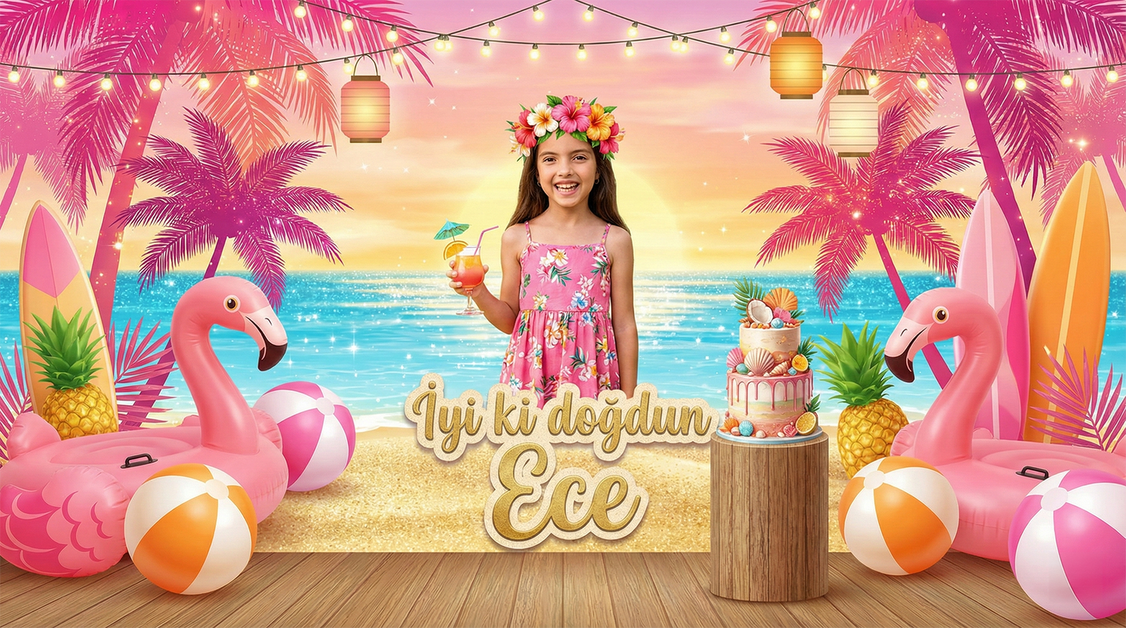 This birthday banner, specially designed for Ece, was created with a unique visual language that reflects the joy and energy of the celebration. Produced as a 200×150 cm vinyl print, it offers a high-resolution and durable solution suitable for both indoor and outdoor use.